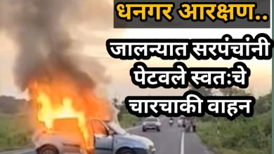 धनगर आरक्षणाची धग वाढली.. जालन्यात सरपंचांनी पेटवले स्वतःचे चारचाकी वाहन