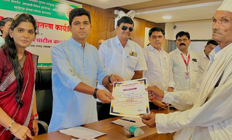 भोकरदन : गोपीनाथ मुंडे शेतकरी अपघात सुरक्षा सानुग्रह अनुदान योजनेअंतर्गत भोकरदन तालुक्यातील 40 तर जाफ्राबाद तालुक्यातील 8 अशा एकूण 48 अपघातग्रस्तांच्या वारसांना 95 लक्ष रुपये अनुदानाचे वाटप गुरुवार दिनांक 24 जुलै 2025 रोजी आमदार संतोष दानवे यांच्या हस्ते वाटप करण्यात आले. यावेळी मा.जि.प. सदस्या सौ. आशाताई पांडे, जि.प. सदस्य डॉ. चंद्रकांत साबळे, भाजपा माजी तालुकाध्यक्ष गणेश पाटील ठाले, तालुका कृषी अधिकारी अमोल शिंदे, गटविकास अधिकारी महेंद्र साबळे आदी मान्यवरांची उपस्थिती होती.