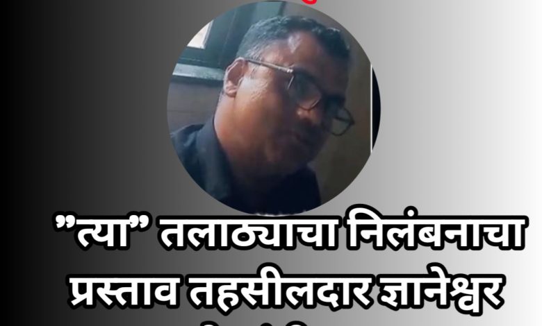 प्रकरण गंभीर स्वरूप धारण करताच तहसीलदार ज्ञानेश्वर काकडे यांनी तात्काळ अहवाल सादर करून संबंधित तलाठ्याच्या निलंबनाचा प्रस्ताव जिल्हाधिकाऱ्यांकडे रवाना केला आहे. आता जिल्हाधिकारी स्तरावरून औपचारिक आदेश होण्याची प्रतीक्षा आहे.